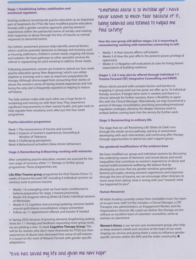 Vida’s Clinical Services Manager, Jane McClaren, wrote this article about developing a gender-sensitive, trauma-focused #CBT service – published in CBT Today Magazine.